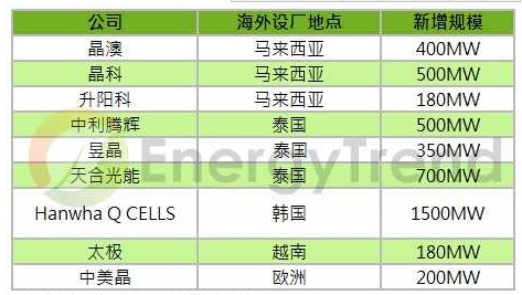 根據EnergyTrend的調查研究,許多廠商今年上半年已紛紛宣布將在東南亞或韓國等地新設產能,在不計印度新增產能的情況下,2015年年底前,僅此亞太區域的電池產能估計將達4.5GW,只要年底前能順利開出產能,就足夠供應美國所需。因此,在這些產能開出后,海外電池的供需可望達到較平衡的狀態,使得中國、臺灣生產的電池價格面臨下跌壓力。