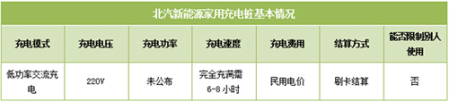 購買北汽新能源車型可隨車贈送一個慢充樁,該充電樁使用的是220V電壓,充滿一輛車需要6-8小時。晚上充電白天使用,大多數(shù)情況不會耽誤車主用車。充電費用方面,采用的是民用電價,結(jié)算方式為每次刷專用電卡結(jié)算。
