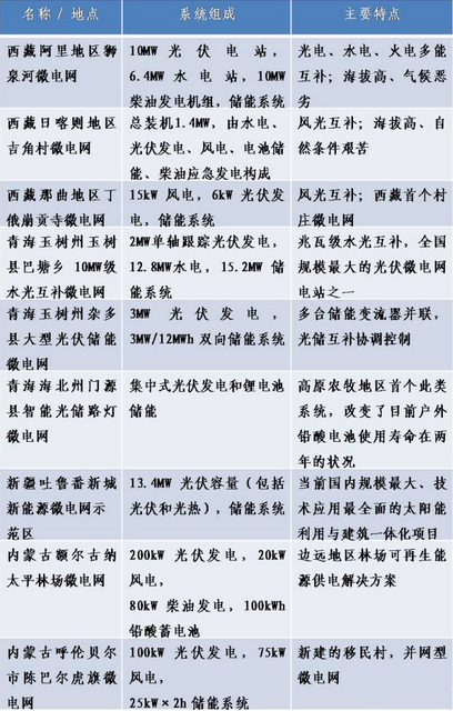 表 1 我國部分邊遠地區微電網示范工程