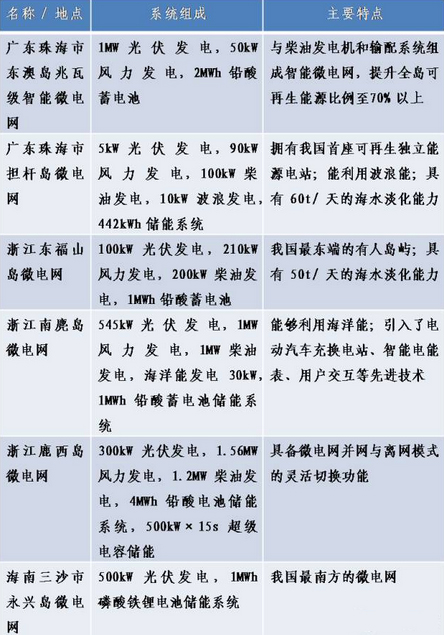 注:表中除浙江鹿西島微電網為并網型微電網外,其余均為獨立型微電網。