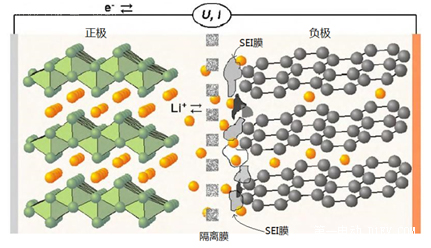 SEI膜的形成過程會消耗電池中的鋰離子,并且SEI膜并不是穩定不變的,會在循環過程中不斷的破裂,露出來新的碳表面再與電解質反應形成新的SEI膜,這樣會不斷造成鋰離子和電解質的持續損耗,導致電池的容量下降。SEI膜有一定的厚度,雖然鋰離子可以穿透,但是SEI膜會造成負極表面部分擴散孔道的堵塞,不利于鋰離子在負極材料的擴散,這也會造成電池容量的下降。
