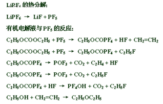 電解質中還含有一定量的水,水會與電解質中的LiFP6發生化學反應,生產LiF和HF,HF進而又破壞SEI膜,生成更多的LiF,造成LiF沉積,不斷的消耗活性的鋰離子,造成電池循環壽命下降。