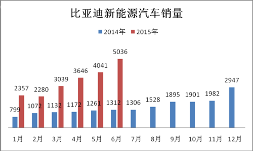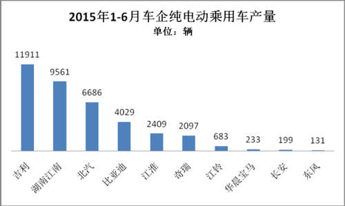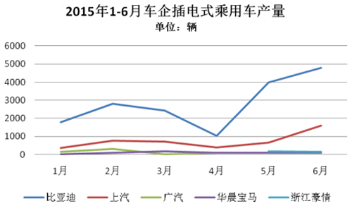 2015年1-6月,純電動乘用車生產3.63萬輛,接近去年全年3.78萬輛的產量,同比增長3倍。