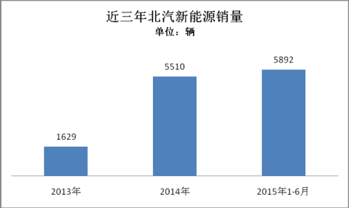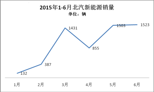 根據乘聯會數據統計,北汽新能源2015年1-6月累計銷售新能源乘用車5892輛。北汽新能源堅持純電動技術路線,推出的新能源車型包括E150EV、EV200、EV160、ES210等均為純電動車型。2014年銷量為5510輛,2013年銷量為1629輛。