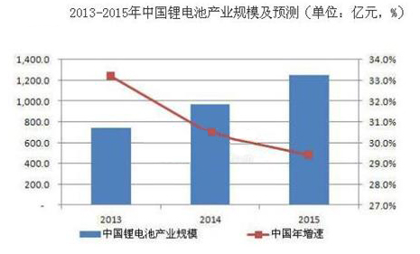 2014年1-12月,我國電池制造業(yè)主要產(chǎn)品中,鋰離子電池累計(jì)完成產(chǎn)量52.9億自然只,產(chǎn)量與上年持平;其中12月份當(dāng)月完成產(chǎn)量4.8億自然只,同比下降12.3%。全球新能源汽車產(chǎn)業(yè)將在技術(shù)不斷成熟、政府扶持政策不斷落地的大背景下呈現(xiàn)出快速產(chǎn)業(yè)化的趨勢,另外,電動工具、電動自行車、新能源等產(chǎn)業(yè)也將在低碳經(jīng)濟(jì)的背景下保持快速發(fā)展的勢頭。就中國市場而言,得益于動力鋰電池的快速發(fā)展,2014年鋰電池整體市場規(guī)模達(dá)到952.16億元,同比增長30.31%,到2015年整個中國鋰電池的市場規(guī)模將突破1000億元,達(dá)到1251.5億元。
