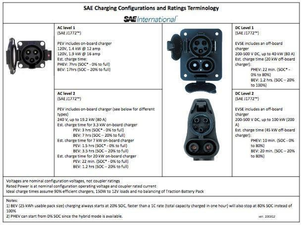SAEJ1772只是一個總稱,它包括4個細分標準,有3種不同的充電接口造型。其中,交流充電標準與直流充電標準,均分別區分Level1與Level2兩種規格,這兩種規格主要是輸出功率的不同。