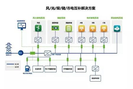 目前智能微電網主要以多種可再生能源為主,電源輸入主要為光伏、風力、氫、天然氣、沼氣等多種成熟發電技術。