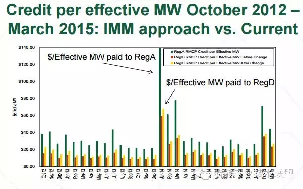 圖1:PJM市場快速調頻服務(RegA)和常規調頻服務(RegD)的價格