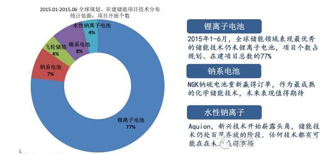 從技術分布來看,上半年的熱點技術仍然是鋰離子電池,占規劃或在建項目總數的77%。