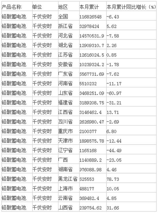 [摘要]中商產業研究院數據顯示:2015年1-7月生產鉛酸蓄電池116826547.67 千伏安時,同比下降6.43 %。