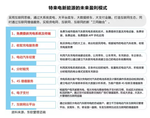 “試想一下,如果車主對汽車安全有所擔憂,在充電時,我們對車進行聯網,獲得新能源汽車的性能數據,知道你的車哪里出現問題,同時給你推薦最合適的維修點。”在郭永光向記者描繪充電樁市場未來的藍圖中,充電樁是一系列增值服務的跳板,也是收集新能源汽車數據的終端,而其衍生出的大數據修車、新能源汽車租賃、充電短信廣告植入、互聯網金融、O2O等商業模式都將緊緊粘合在充電樁中,成為增值服務。而這些模式,先后在多個采訪中都有被提及。