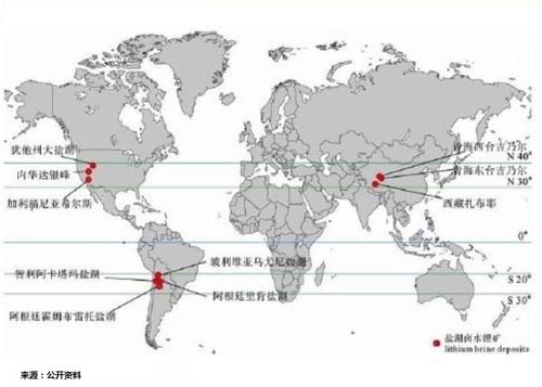 全球主要鹵水鋰資源分布: