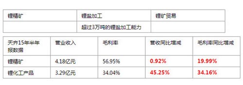 天齊鋰業由于在上游礦產方面具有較大的優勢,目前的主營業務主要聚焦于鋰產業鏈的上游和中游,泰利森的礦產資源豐富,因此鋰精礦貿易能為公司業績提供長期保障,公司帶部分業績也來源于鋰精礦的收入。