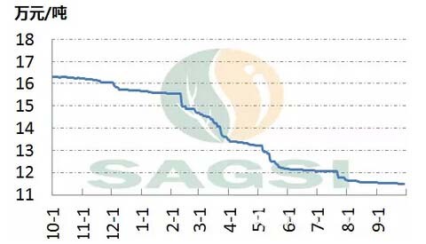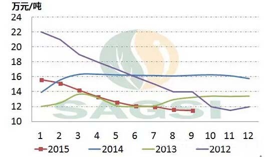 圖1 2014年10月~2015年9月國內多晶硅價格走勢