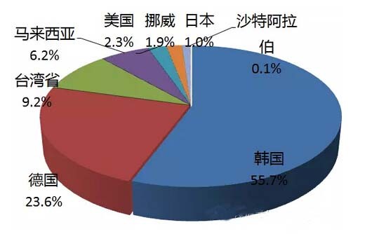 圖3 8月份中國多晶硅進口來源地統計(按量)