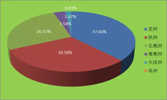 圖6 2015全球新能源企業(yè)500強(qiáng)各大洲入選企業(yè)數(shù)