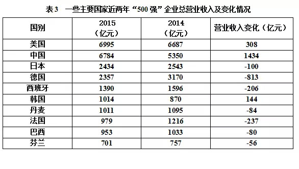 從上榜企業(yè)數(shù)看,2015“500強(qiáng)”企業(yè)中,新興市場國家上榜企業(yè)為234家,比2014的227家增加了7家;而發(fā)達(dá)國家上榜企業(yè)數(shù)為266家,比2014的273家減少了7家。新興市場國家與發(fā)達(dá)國家二者之間上榜企業(yè)數(shù)之比為1:1.17(上年則為1:1.20),差距進(jìn)一步縮小。