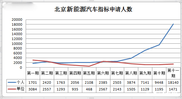 經審核,截止到2015年10月8日24時,示范應用新能源小客車指標申請個人共有17150個有效編碼、單位共有1513個有效編碼。 北京市小客車指標調控管理辦公室10月25日的公告明確顯示:“ 為落實國務院9月29日常務會議精神,進一步促進新能源汽車發展,本期示范應用新能源小客車指標向所有通過資格審核的申請人直接配置。”
