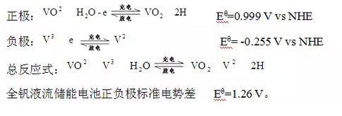 全釩液流儲能電池正極電對為VO2+/VO2+,負極電對為V2+/V3+,電極發生如下電化學反應: