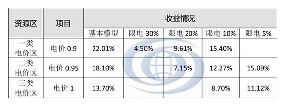 當一類資源區棄光率30%、二類資源區棄光率20%時,資本金內部收益率低于8%;