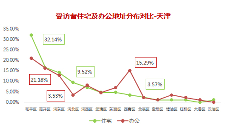 天津受訪者范圍覆蓋了14個城區,其中和平區、南開區、河東區的受訪者人數最多。