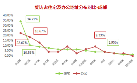 成都受訪者范圍覆蓋了13個城區,其中武侯區的受訪者人數最多,遠遠高于其他城區。