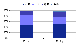 圖2:中日韓三國正極材料市場份額占比(數(shù)據(jù)來源:SNE,安信證券研究中心)