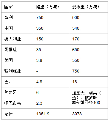 據(jù)美國地質(zhì)調(diào)查所2015年 的最新數(shù)據(jù),世界已查明的鋰資源量約為3950萬噸,儲量約1350萬噸。主要集中在南美的鋰三角(智利、阿根廷和玻利維亞),中國的儲能和資源量居世界第二,美國的儲能僅相當于中國10.86%。同時中國的天齊鋰業(yè)擁有全球鋰礦石巨頭泰利森51%的股權,鋰資源大量依靠進口根本是無稽之談。