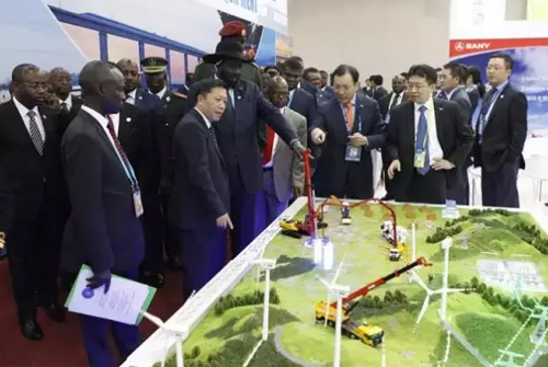 當(dāng)?shù)貢r(shí)間12月4日,由中國商務(wù)部、南非貿(mào)易和工業(yè)部共同主辦的“中非裝備制造業(yè)展”在南非約翰內(nèi)斯堡正式開展。中國國家主席習(xí)近平以及出席“中非合作論壇”的各國政要領(lǐng)導(dǎo)人出席展會(huì)開幕式。隨后,習(xí)近平在南非總統(tǒng)的陪同下參觀了三一集團(tuán)、中地海外、中國電建的聯(lián)合展臺(tái),并向非洲各國政要推介三一風(fēng)電。