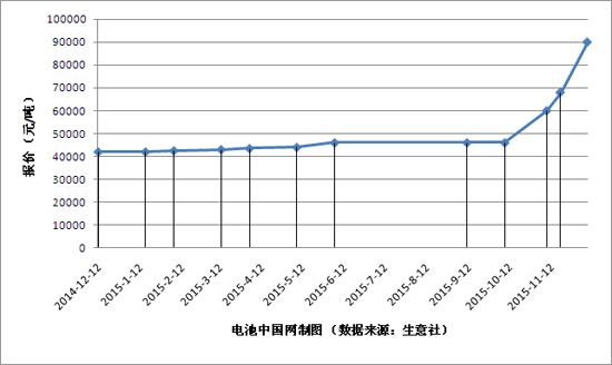 四川國(guó)鋰2014年12月-2015年12月工業(yè)級(jí)碳酸鋰報(bào)價(jià)趨勢(shì)變化圖