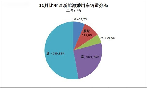 從比亞迪車型銷量分布看,插電式混動乘用車車型依舊是主攻方向,旗下秦和唐的銷量占比亞迪車企總銷量的79%,其中,比亞迪唐銷量達4049輛,占比53%;秦銷量2021輛,占比26%。而比亞迪純電動車型本月銷量僅1593輛,占比總銷量的21%。純電動車型雖與插電式車型相差較大,但較之上月677輛的銷量已有大幅提升。比亞迪旗下三款純電動車型銷量本月都有不同幅度增長,其中僅騰勢銷量達715輛,凈增530輛;主攻出租車領域的e5本月銷量也達379輛,凈增240輛;e6銷量達499輛,凈增146輛。