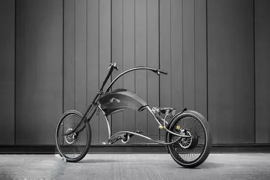 這輛電動自行車采用純手工打造,看到這優美的弧線都是熟手的鈑金師傅親手凹出,十足哈雷范,在上面完全可以騎出阿諾斯瓦辛格的感(cuo)覺(jue),同時車架由不銹鋼制成,重量55kg,根據自己對體形的自信程度,還可以懸著2600、2800、3000mm三種長度,真不知道3m長的電動自行車騎起來會是什么樣的體驗。