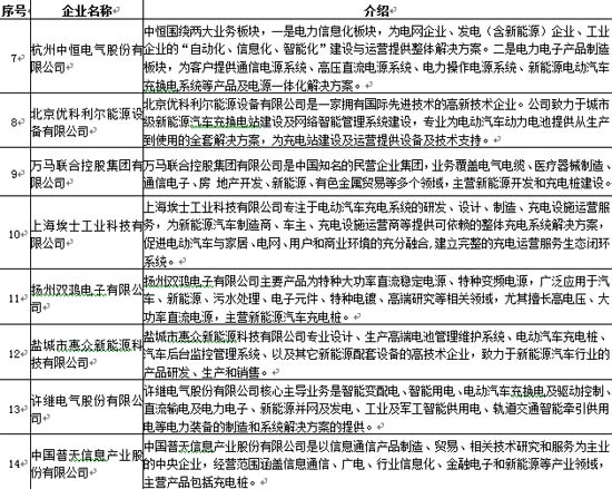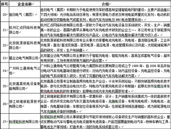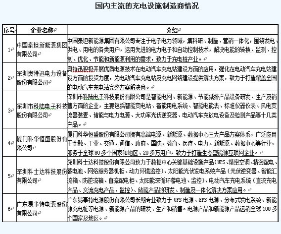 目前國內主流的充電設施制造商主要有30家,具體情況如下: