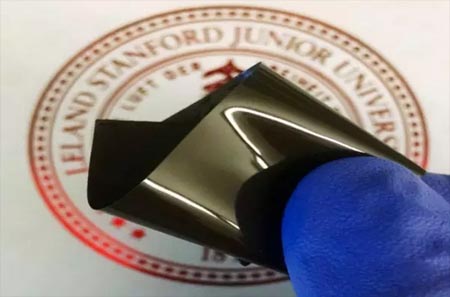 對比之下,這種新方法的好處在于它能自動反應(yīng),而且重復(fù)生效。這種材料由極微小的鎳粒子組成,表面突出著納米級的小刺。這些粒子被石墨烯包裹,被嵌入到一片有彈性的基乙烯薄膜中。