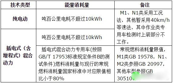 純電動、插電式混合動力(含增程式)專用車、貨車能量消耗量須符合以下要求:
