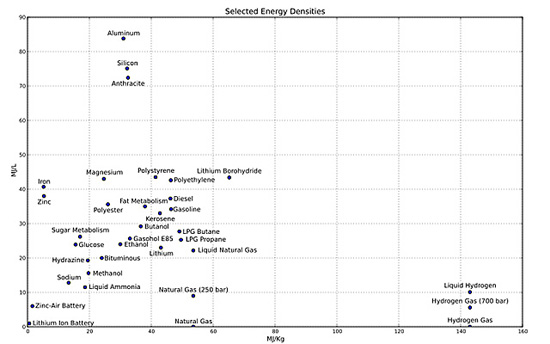 上圖是從wiki中轉(zhuǎn)載的各種能量載體的能量密度。