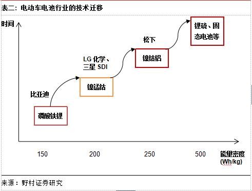 在對動力電池的研究當中,我們發現電池與半導體行業有諸多類似,即都是以技術和產能擴張帶動發展。我們認為電池技術是動力電池市場競爭中的主要分水嶺,和半導體行業通過技術迭代以爭取額外毛利的商業模式類似。在我們看來,松下目前在能量密度和成本方面依然領先,以此成為特斯拉的唯一供應商。LG化學和三星SDI則在NMC三元電池技術和生產效率上領先中國廠商,并得以進入中國電動汽車市場。比亞迪和其它本地廠商一直致力于通過提升電池技術來和全球主要同行在價格效率方面競爭。