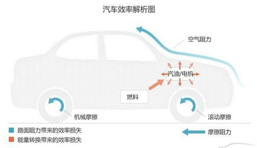 汽車行駛效率來了解電動(dòng)車的節(jié)能優(yōu)勢(shì)。上面提到只是發(fā)動(dòng)機(jī)將燃料/能量來源轉(zhuǎn)換成機(jī)械時(shí)的效率。實(shí)際上一輛行駛中的汽車還會(huì)受到各種阻力而導(dǎo)致效率的進(jìn)一步減低,汽車在行駛上會(huì)受到空氣阻力、路面滾動(dòng)摩擦阻力、以及車內(nèi)傳動(dòng)部件機(jī)械摩擦阻力和機(jī)械摩擦所帶來的損失。所以實(shí)際上燃料最終能轉(zhuǎn)換到車的動(dòng)能可以說少得可憐。無論汽油車還是電動(dòng)車都要面對(duì)這些損失的能量。常規(guī)動(dòng)力汽車在高速上的油耗表現(xiàn)比市區(qū)內(nèi)要好很多,一般汽車的節(jié)油速度區(qū)間在時(shí)速60-100公里/小時(shí)范圍。
