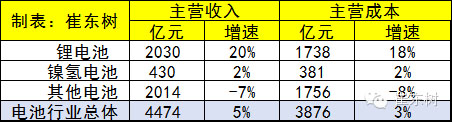 從電池行業的成本看,成本壓力較小,鋰電池的成本增長慢于收入增長兩個百分點;鎳氫電池的也是稍慢,鉛酸等其他電池的成本下降快于收入下降1個點。行業運行狀態總體很好。