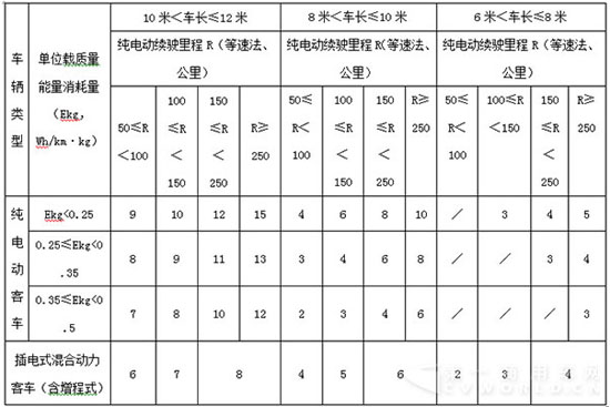 二、純電動、插電式混合動力(含增程式)等客車推廣應用補助標準(單位:萬元/輛)