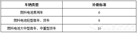 四、燃料電池汽車推廣應用補助標準(單位:萬元/輛)