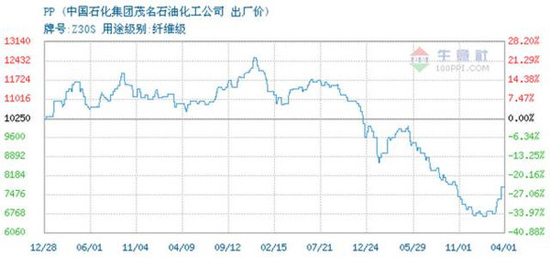 主要原材料PP最近的價格走勢如下圖: