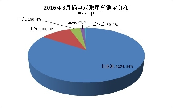 細(xì)分看,3月銷量增長(zhǎng)幅度最大的當(dāng)數(shù)比亞迪,由2月1217輛的水平攀升至3月3000多輛的水平,環(huán)比增幅達(dá)1.5倍。其中比亞迪純電動(dòng)乘用車車型逐步豐富,新推出的比亞迪秦EV3月銷量也達(dá)229輛,此外,比亞迪e6、e5、騰勢(shì)銷量都有提升,e6也由2月1105輛的銷量提升至3月2061輛的水平??傮w看,純電動(dòng)乘用車銷售比例在比亞迪企業(yè)內(nèi)部逐步加大,與插電式混合動(dòng)力乘用車比例基本持平,各占50%。